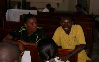 Raoul Jean-Louis e Marie Carmelle Cheri sono fra i giovani responsabili della scuola, che accompagnano gli altri giovani in tutte le lezioni. “La scuola – spiega Raoul – ha cominciato la sua attività attraverso un aspetto teorico. E’ stato importante far comprendere e condividere con gli studenti i fondamenti ideali della scuola: per questo, ci vuole una parte teorica ben assorbita. Ma subito nasce l’esigenza di mettere in pratica le idee, in confronto con la realtà. Col proseguire dei corsi è aumentato anche l’impegno sociale e politico degli studenti, che non vivono la fraternità soltanto fra di loro, ma la portano anche alle persone al di fuori”. E proprio all’aspetto pratico è particolarmente attenta Marie Carmelle, che lancia una proposta: “A questo punto mi sembra molto importante condividere maggiormente l’esperienza con i giovani delle altre scuole che hanno lo stesso ideale: le scuole «Res nova» in Italia e quelle che si stanno aprendo in questo periodo in Argentina. Certamente siamo aggiornati gli uni sugli altri, ma penso a qualche cosa di più personale e coinvolgente. Non è difficile: basta scambiarsi gli indirizzi e-mail e fare in modo che ogni studente corrisponda con qualche altro, negli altri Paesi, per condividere le nostre esperienze. Dobbiamo andare avanti e vedere il lato pratico delle cose. La fraternità va costruita prima di tutto attraverso questi rapporti personali. E sono convinta che, conoscendoci meglio, verranno anche delle idee per delle azioni comuni”.